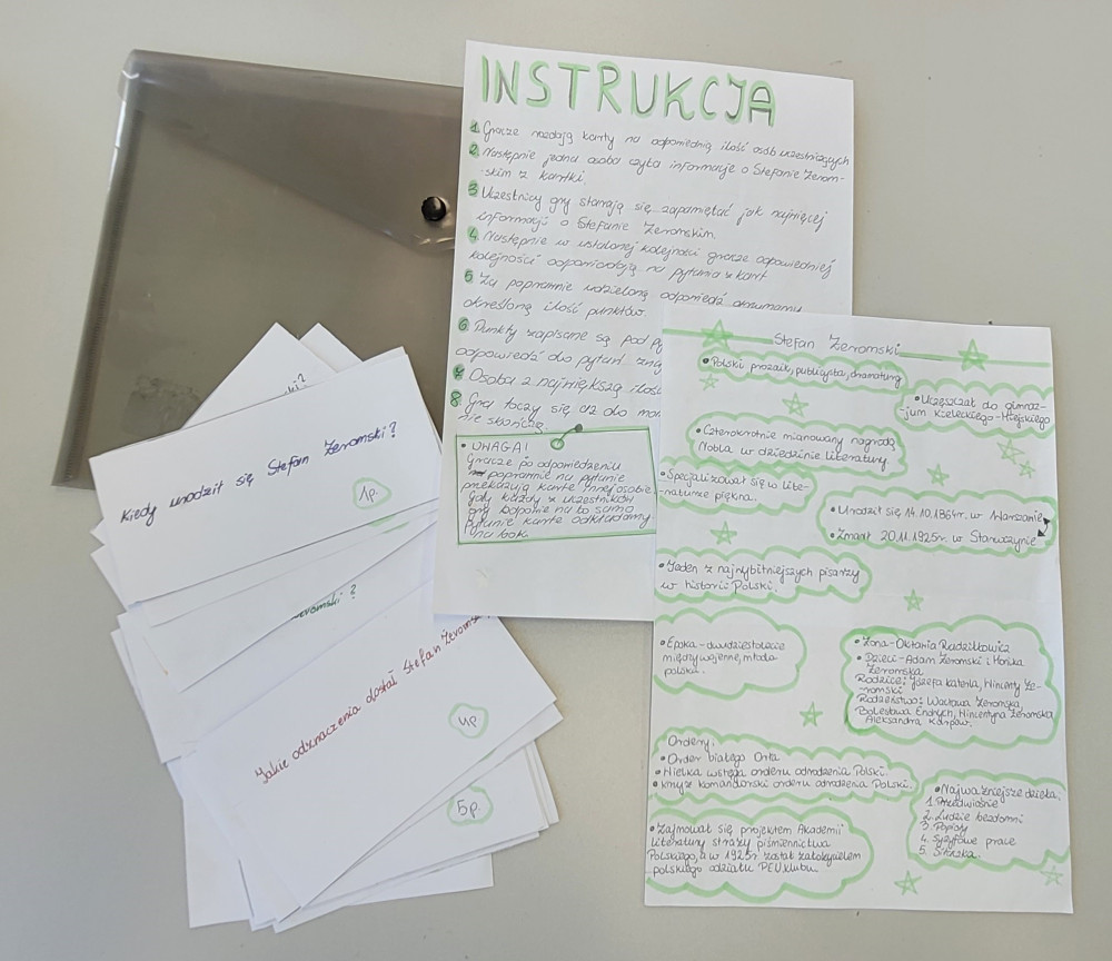 Uczniowie tworzyli grę planszową lub karcianą o tematyce związanej z życiorysem bądź samą postacią Stefana Żeromskiego.