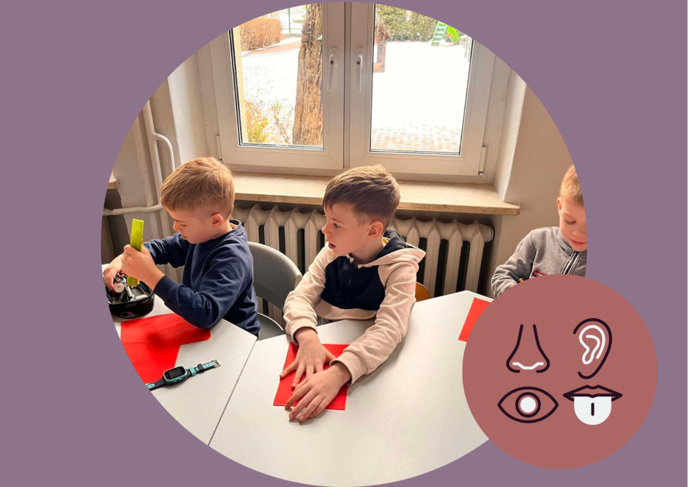 Pod hasłem „Podróż do Krainy Naszych Zmysłów” dzieci odkrywały, jak niezwykłe jest nasze ciało i jak pięknie potrafi odbierać otaczający świat. Zaczęliśmy od edukacyjnego filmu, który w przystępny sposób wprowadził dzieci w tematykę pięciu podstawowych zmysłów – wzroku, słuchu, dotyku, smaku i węchu. Film pozwolił dzieciom lepiej zrozumieć, jak nasze zmysły pomagają nam codziennie poznawać i interpretować otaczającą nas rzeczywistość.