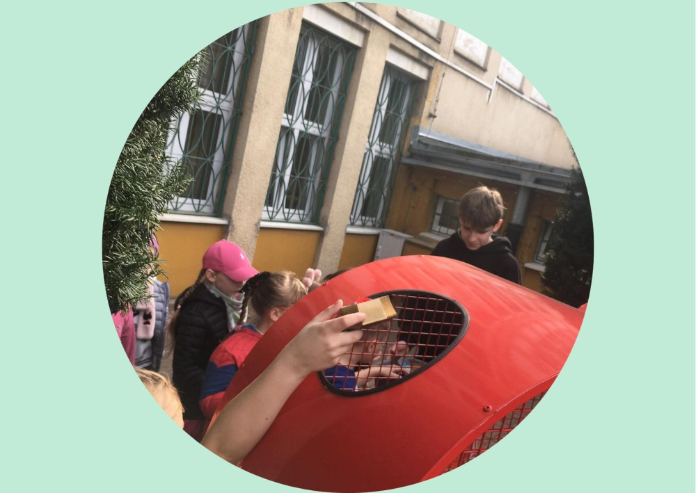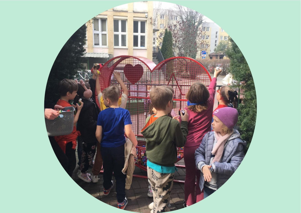 Na początku tego tygodnia, wspólnie z uczniami klas pierwszych i drugich, wsypaliśmy zebrane nakrętki do wielkiego, czerwonego serca, które stoi przed naszą szkołą.