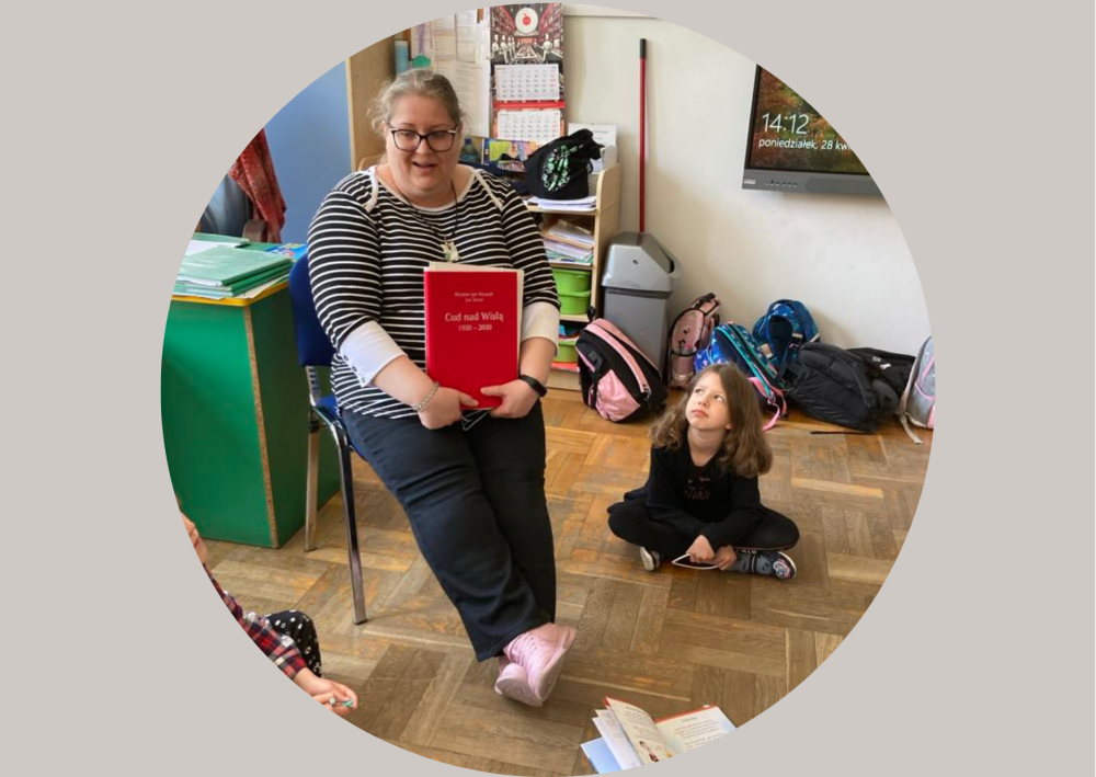 Spotkanie było nie tylko ciekawą lekcją, ale też doskonałą okazją do rozwijania postawy patriotycznej i budowania tożsamości narodowej. Dzieci zadawały pytania, dzieliły się swoimi przemyśleniami, a także z zaciekawieniem przeglądały przyniesione przez gościa książki – pięknie ilustrowane, dostosowane do wieku młodszych czytelników i pełne inspirujących treści.