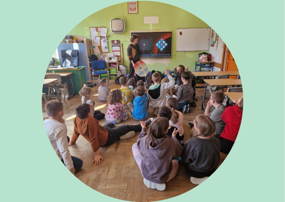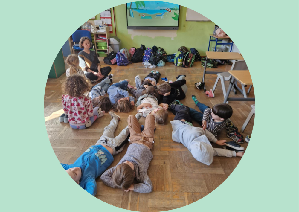Drugą część zajęć poświęciliśmy ćwiczeniom relaksacyjnym przy muzyce. Uczniowie poznali proste techniki oddechowe i sposoby wyciszania się, które mogą im pomóc w chwilach napięcia czy złości. Było spokojnie, przyjemnie i bardzo refleksyjnie.