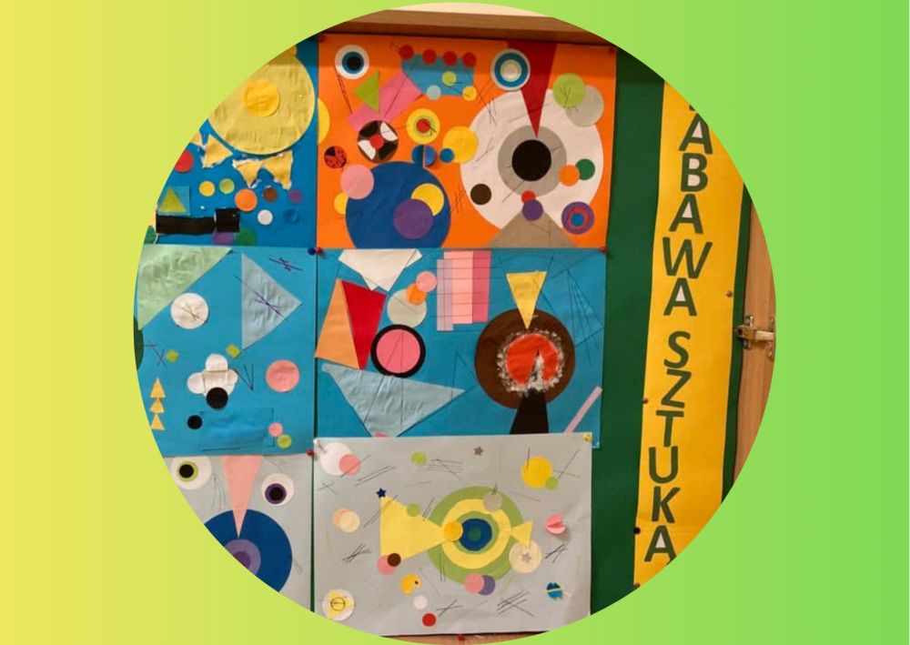 W ramach Ogólnopolskiego Projektu Edukacyjnego „Zabawa sztuką” dzieci ze świetlicy szkolnej wzięły udział w kolejnych kreatywnych zajęciach plastycznych. Tym razem inspiracją do działań był Wasilij Kandinsky – malarz uznawany za jednego z prekursorów sztuki abstrakcyjnej.