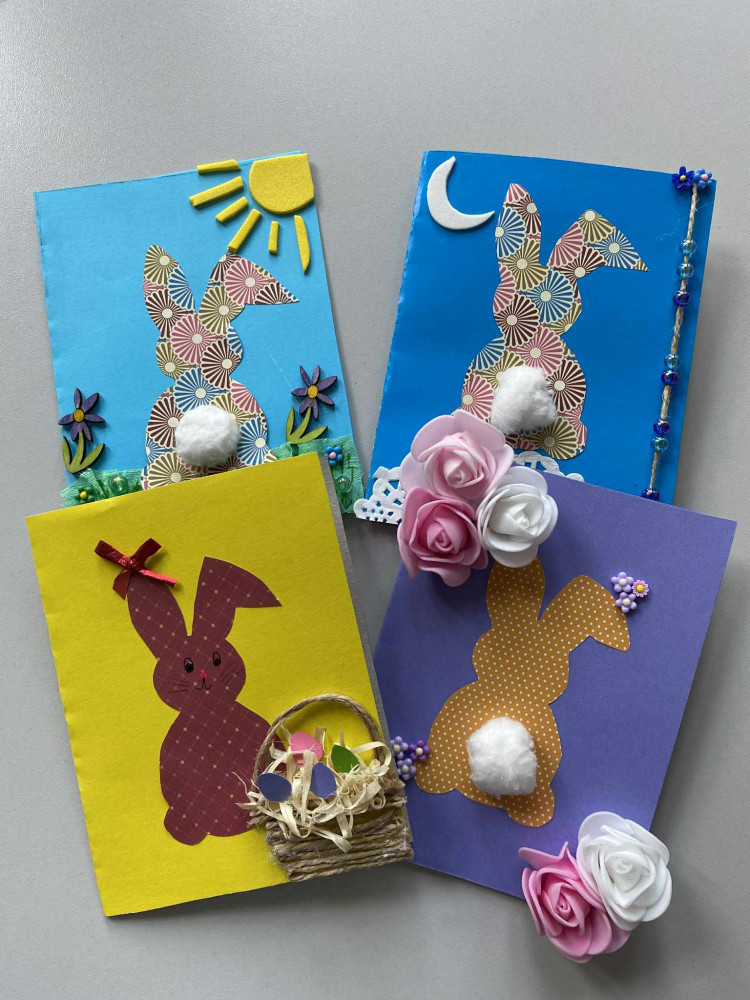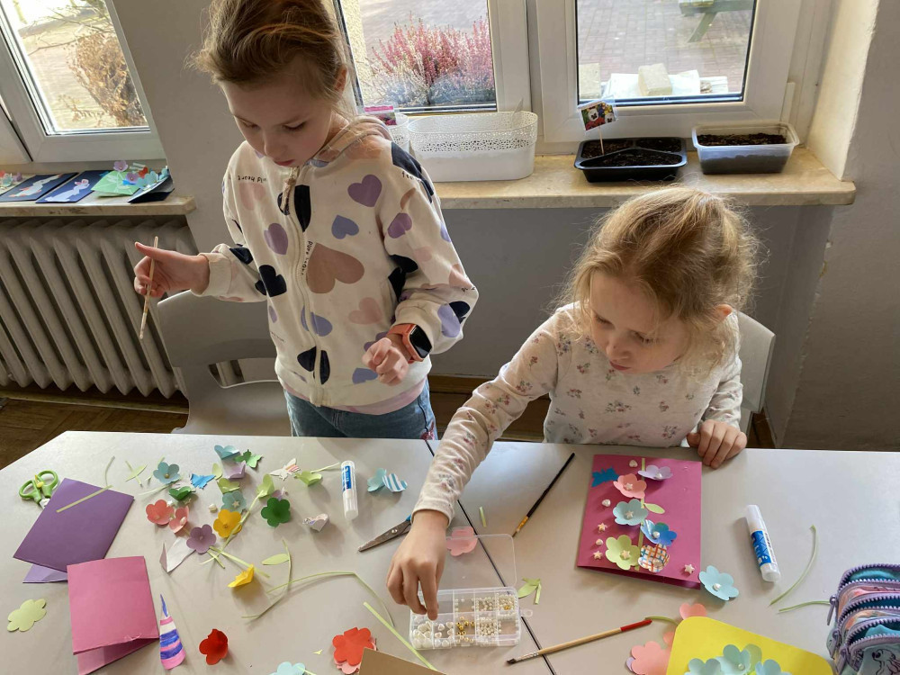 Podczas zajęć powstały piękne, kolorowe kartki z życzeniami, a także ręcznie wykonane dekoracje nawiązujące do wielkanocnych symboli – wiosennych kwiatów, pisanek, baranków oraz kurczaczków. Każda praca była wyjątkowa i wykonana z ogromną starannością, a dzieci włożyły w swoje dzieła nie tylko kreatywność, lecz także wiele serca.