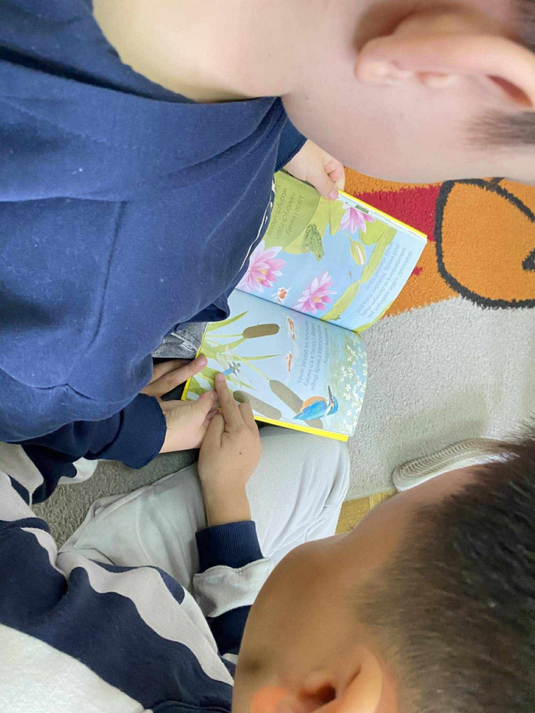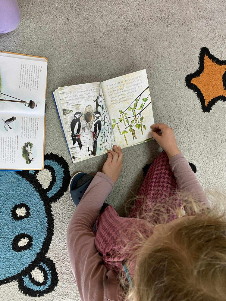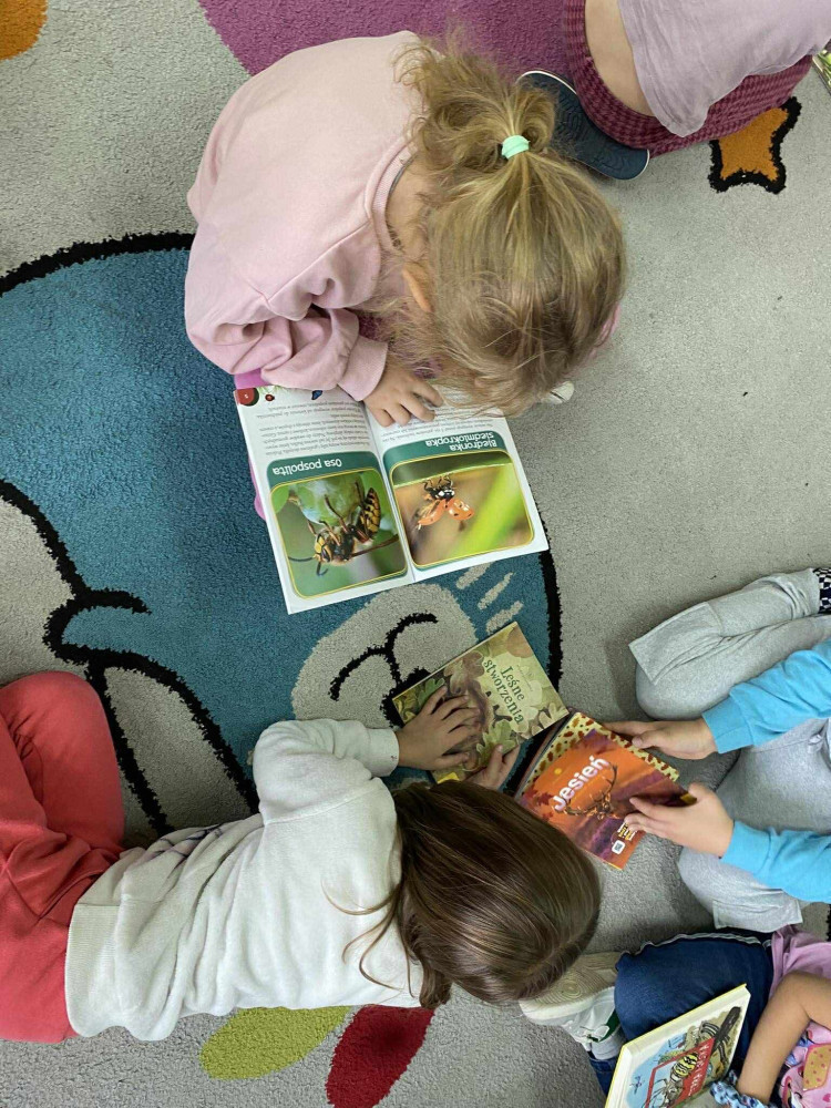 Pani Kasia zaprezentowała dzieciom bogaty wybór książek związanych z jesienią – zarówno literaturę piękną, jak i popularnonaukową. Opowiedziała, które tytuły warto przeczytać, i wskazała pozycje szczególnie ciekawe dla młodszych czytelników. Uczniowie mieli również okazję samodzielnie przeglądać przygotowane książki, czytać wybrane fragmenty oraz dzielić się swoimi wrażeniami z innymi.