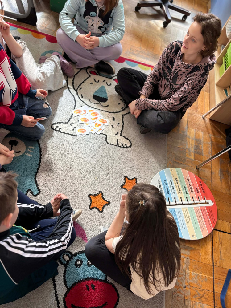 W dniu 20 kwietnia 2026 r. pani psycholog Kasia Jaworska przeprowadziła świetlicowe zajęcia poświęcone tematyce empatii. Tematem spotkania było pytanie: „Czy odczuwamy emocje tak samo?”, które stało się punktem wyjścia do ciekawych rozmów i refleksji.