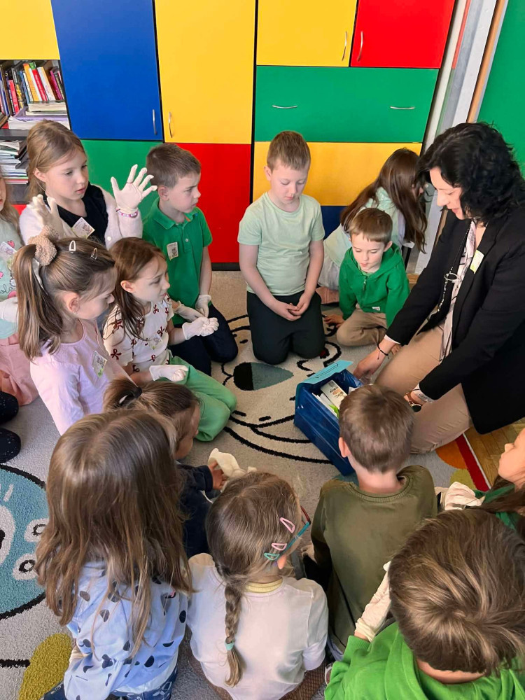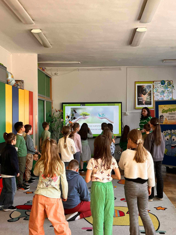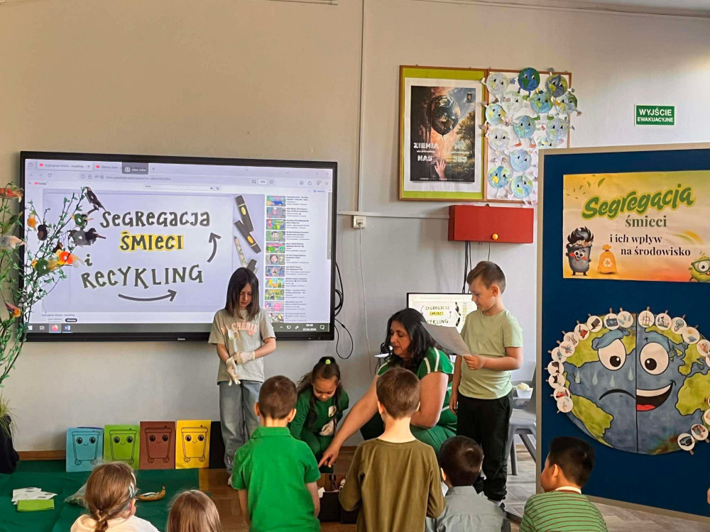 Podczas spotkania uczniowie poszerzyli swoją wiedzę na temat ekologii, poznali znaczenie pojęć takich jak recykling, segregacja czy odpady, a także uświadomili sobie, jaki wpływ na środowisko ma działalność człowieka. W trakcie różnorodnych aktywności – rozmów kierowanych, burzy mózgów, pracy z materiałem ilustracyjnym oraz inscenizacji – dzieci miały możliwość samodzielnego wyciągania wniosków i dzielenia się swoimi spostrzeżeniami.