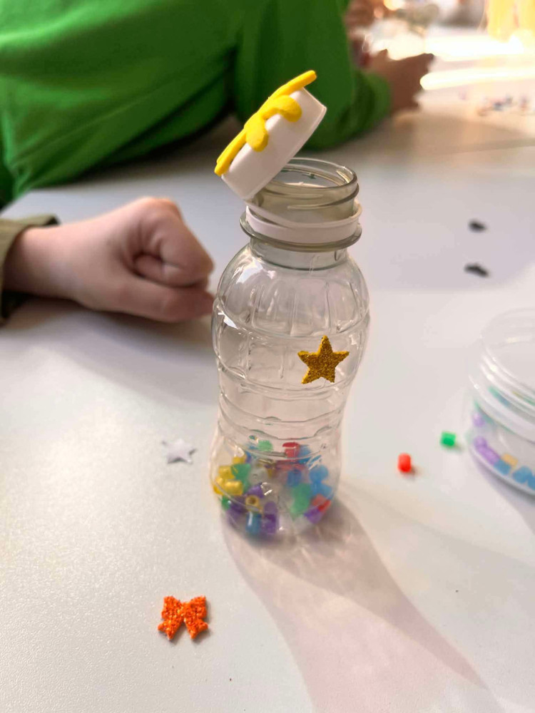 Istotnym elementem zajęć była także część artystyczno-techniczna, w której uczniowie wykonali własne instrumenty muzyczne z wykorzystaniem materiałów wtórnych. Działanie to nie tylko rozwijało kreatywność, ale przede wszystkim utrwalało ideę nadawania odpadom „drugiego życia”. Wspólna zabawa z wykorzystaniem wykonanych instrumentów była okazją do integracji oraz radosnego podsumowania zdobytej wiedzy.