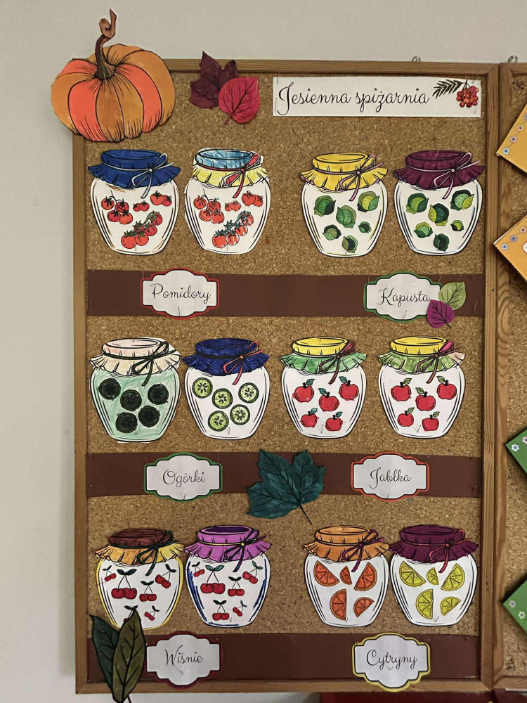 W części plastycznej stworzyliśmy jesienną spiżarnię, która pięknie ozdobiła naszą świetlicę. Założyliśmy również „Dzienniczki Podróżnika”, które będą nam towarzyszyć przez cały rok. Dzienniczki są uzupełniane podczas zajęć i na zakończenie innowacji – razem z dyplomem uczestnictwa – zostaną przekazane dzieciom.