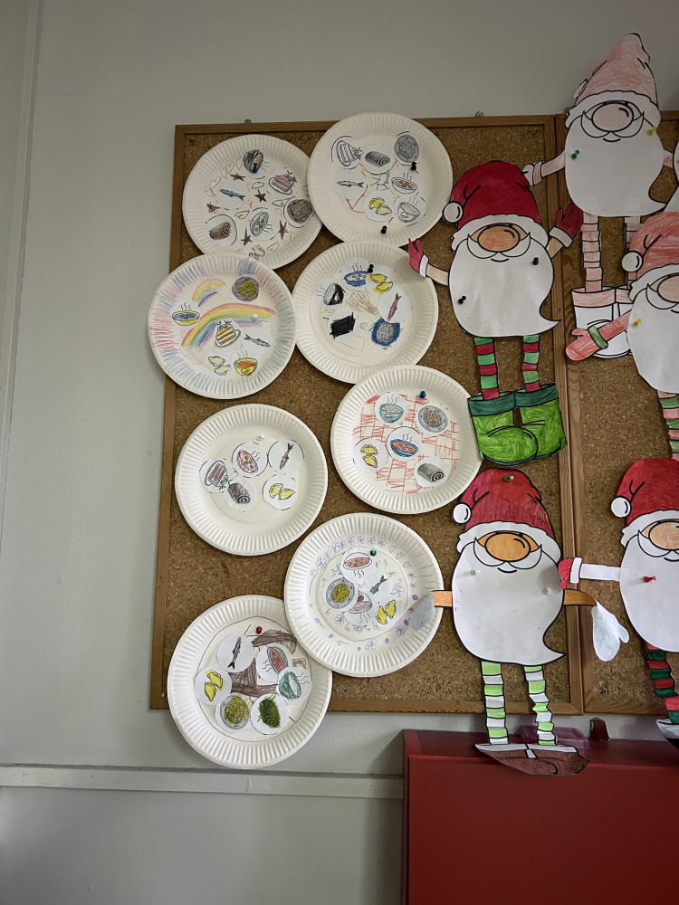 Następnie wykonaliśmy pracę plastyczną „Talerze z potrawami wigilijnymi”, podczas której dzieci mogły zaprezentować poznane dania, rozwijając kreatywność i utrwalając wiedzę o tradycyjnych potrawach świątecznych.