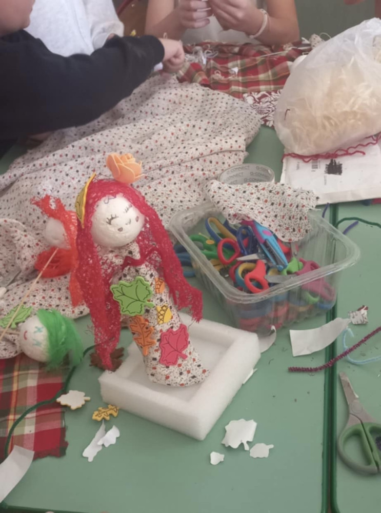 Zajęcia były okazją do rozwijania wyobraźni, zdolności manualnych i kreatywności. Dzieci z zapałem tworzyły swoje postacie, dobierając kolory, materiały i jesienne akcenty, które oddawały niepowtarzalny klimat tej pory roku. Każda pacynka stała się małym dziełem sztuki – pełnym barw, pomysłowości i dziecięcej radości.