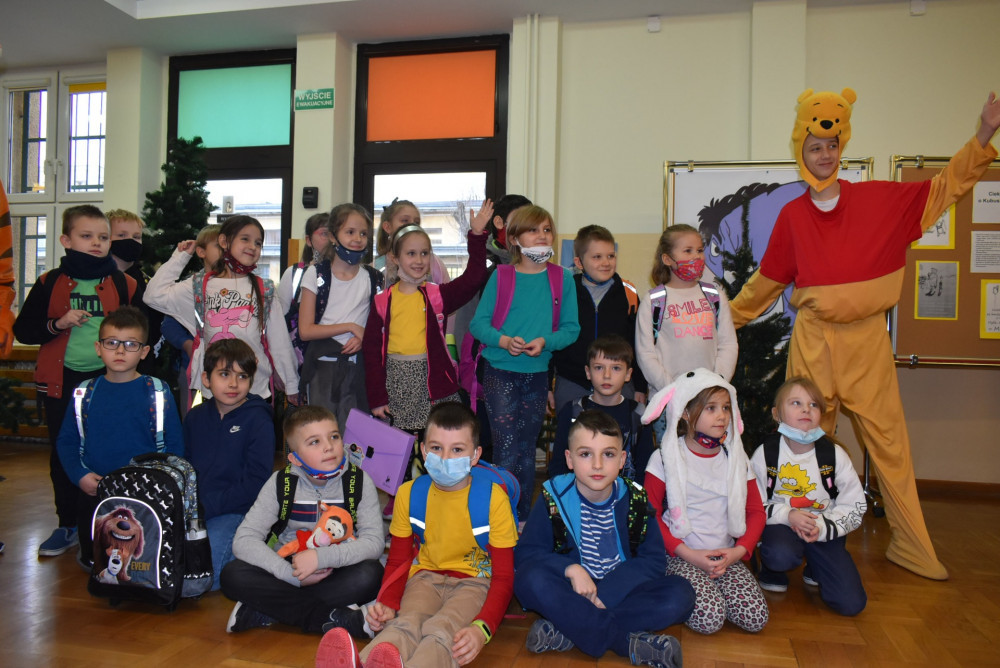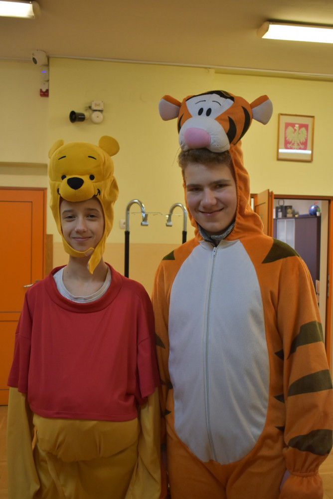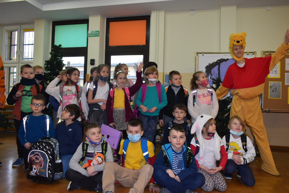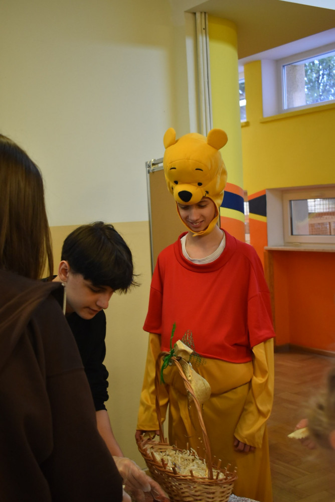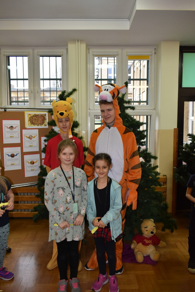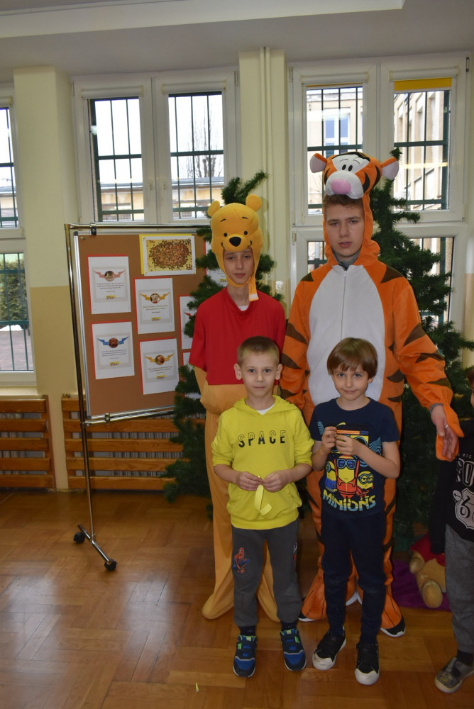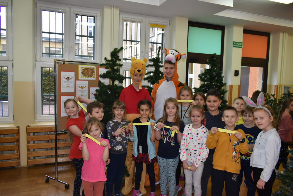 Wolontariusze klas starszych pod kierunkiem pani pedagog stworzyli w dniu 19 stycznia 2022 roku niezapomniane święto Kubusia Puchatka i jego przyjaciół. Dwóch uczniów przebrało się w stroje Puchatka i Tygryska i pozowali do zdjęć z młodszymi uczniami. Tego dnia miała również miejsce degustacja miodów. Można było schować się w Stumilowym Lesie i przytulić maskotki.