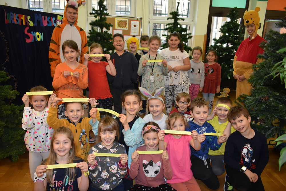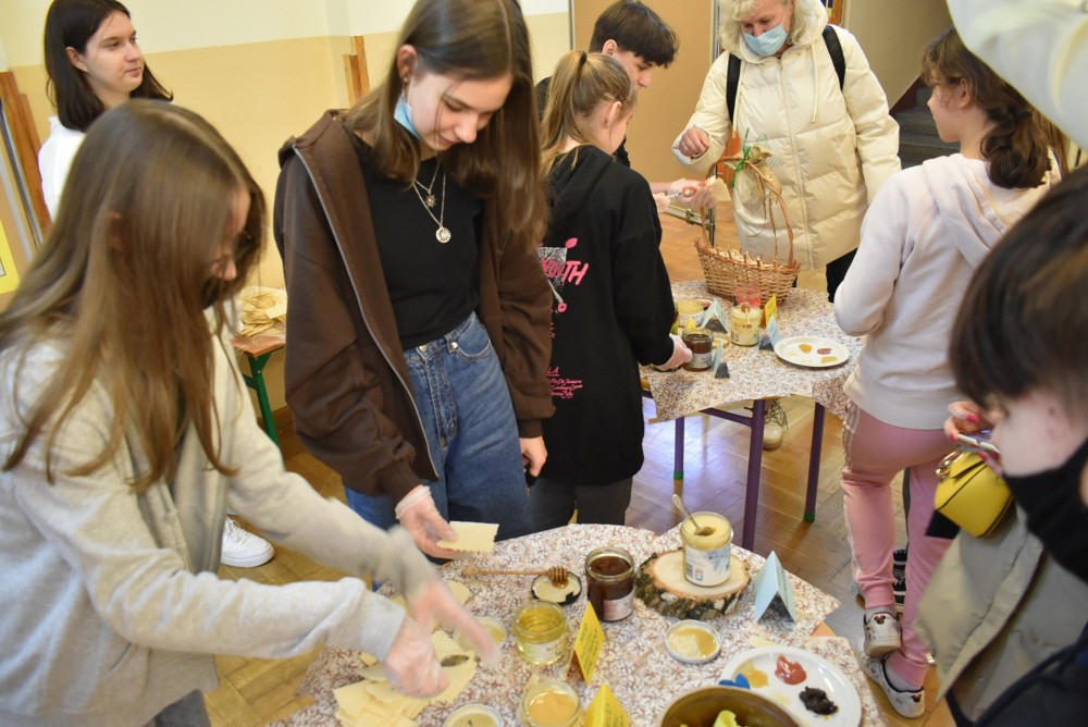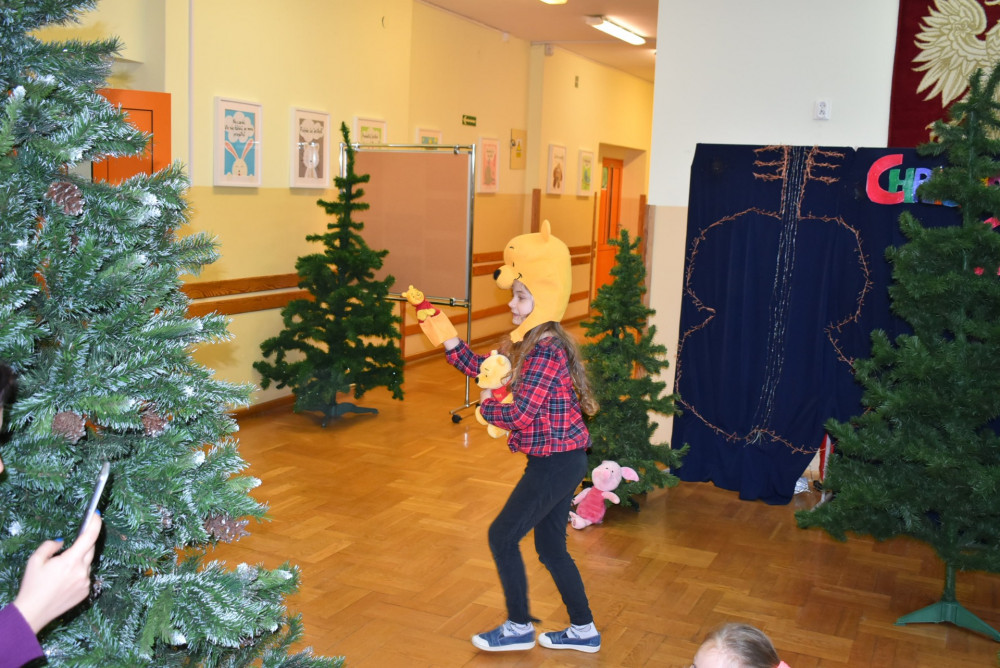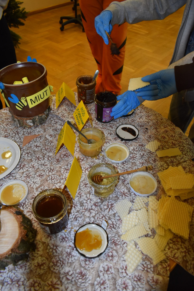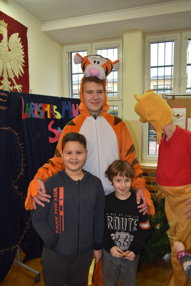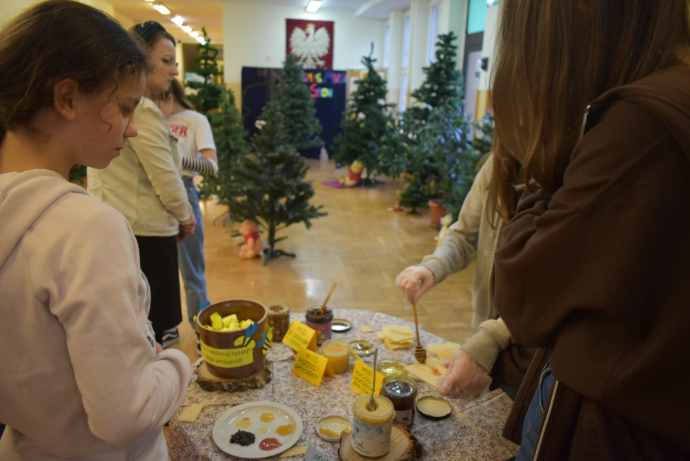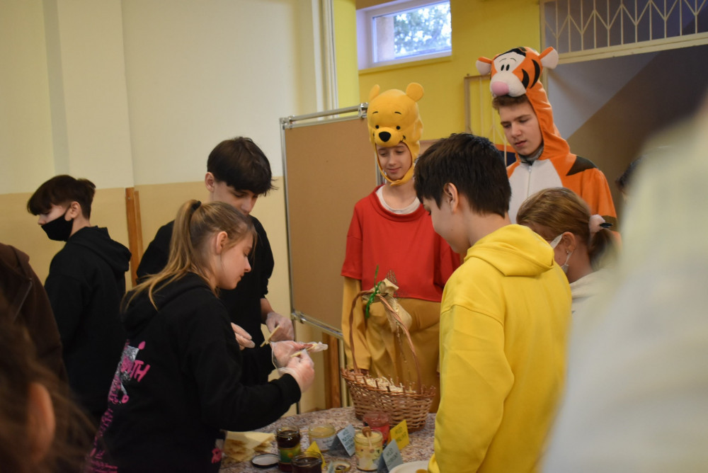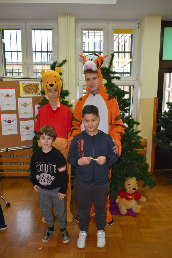Wolontariusze klas starszych pod kierunkiem pani pedagog stworzyli w dniu 19 stycznia 2022 roku niezapomniane święto Kubusia Puchatka i jego przyjaciół. Dwóch uczniów przebrało się w stroje Puchatka i Tygryska i pozowali do zdjęć z młodszymi uczniami. Tego dnia miała również miejsce degustacja miodów. Można było schować się w Stumilowym Lesie i przytulić maskotki.