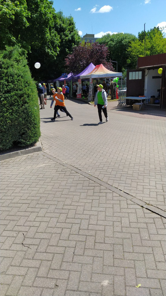 Ta niezwykła impreza sportowa, odbyła się na terenie Ośrodka Sportu i Rekreacji na Targówku w sobotę 3 czerwca 2023 roku. Młodzi ludzie z niepełnosprawnościami brali udział w różnych konkurencjach sportowych. Nasi wolontariusze z klas 6, 7 i 8 pomagali zawodnikom. Czuwali przy nich, pilnowali, by stawili się na konkurencje, kierowali nimi po boisku, towarzyszyli w czasie przerw. Pomagali już od godzin porannych. Sami otrzymali też czapeczki, koszulki, talony na kiełbaski i wodę. Opiekę nad wolontariuszami sprawowała na miejscu opiekun wolontariatu Agnieszka Balasińska. Uczniowie mieli możliwość zintegrować się z wolontariuszami z innych szkół oraz poznać wiele niezwykłych ludzi, nie tylko dzieci.