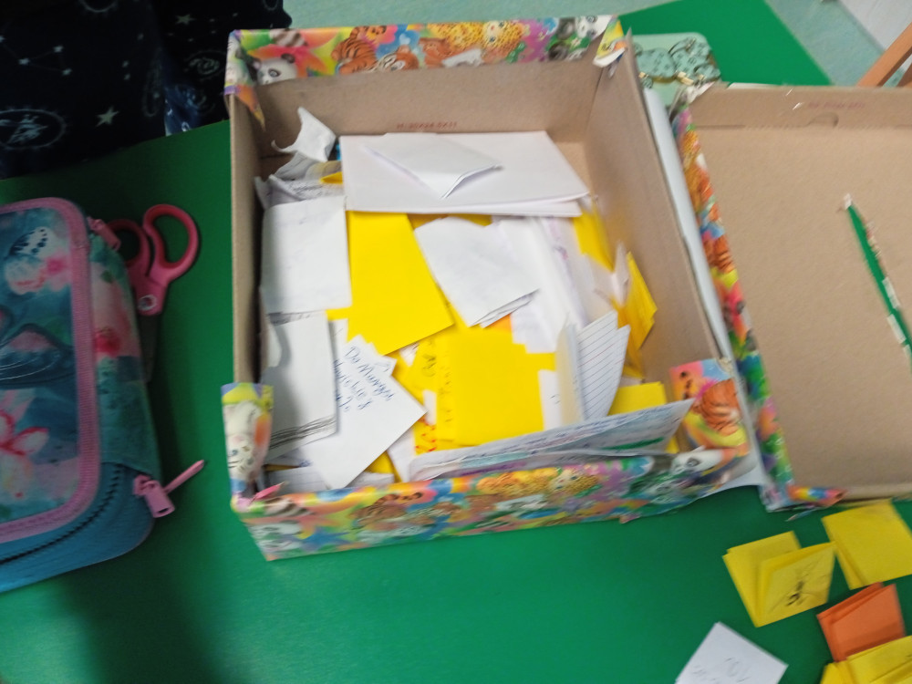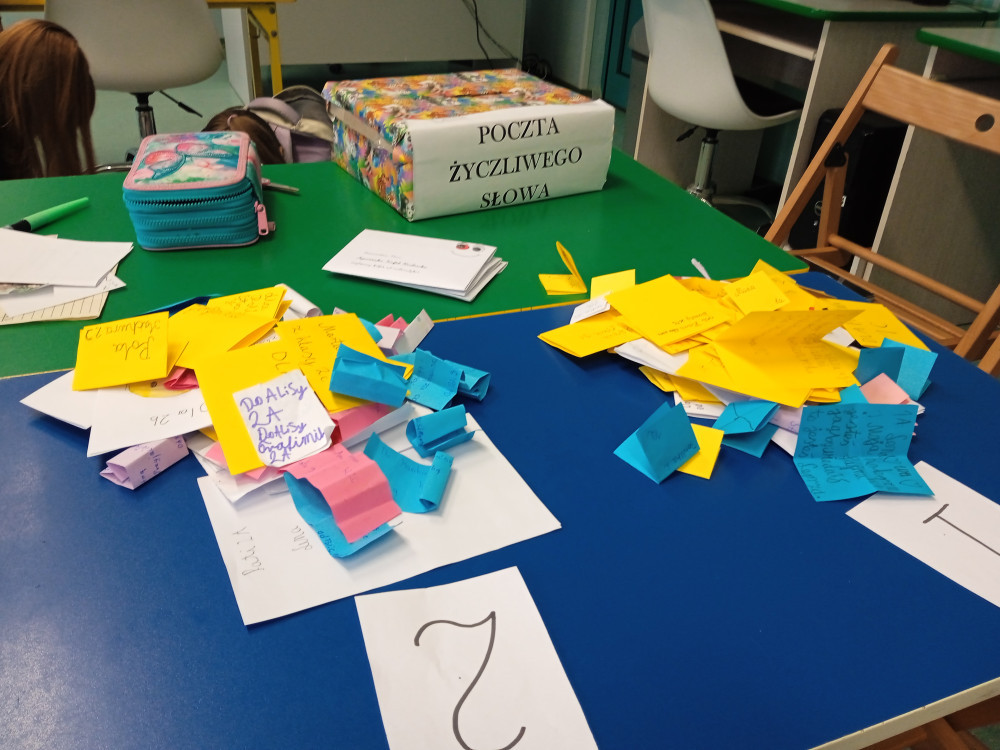 Nasi szkolni wolontariusze zorganizowali Pocztę Życzliwego Słowa. Każdy mógł przygotować karteczkę lub liścik dla innej osoby i wrzucić je do specjalnie przygotowanych na tą okazję skrzyneczek. Ochoczo zaangażowani wolontariusze zadbali o to, by trafiły one do odbiorcy.
