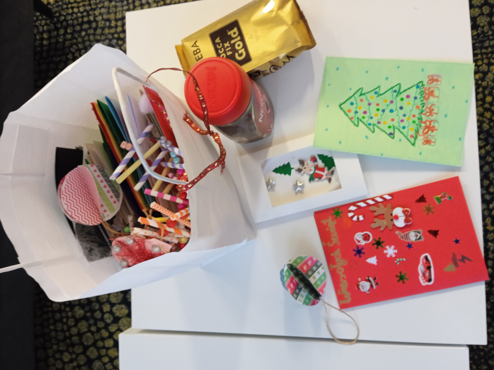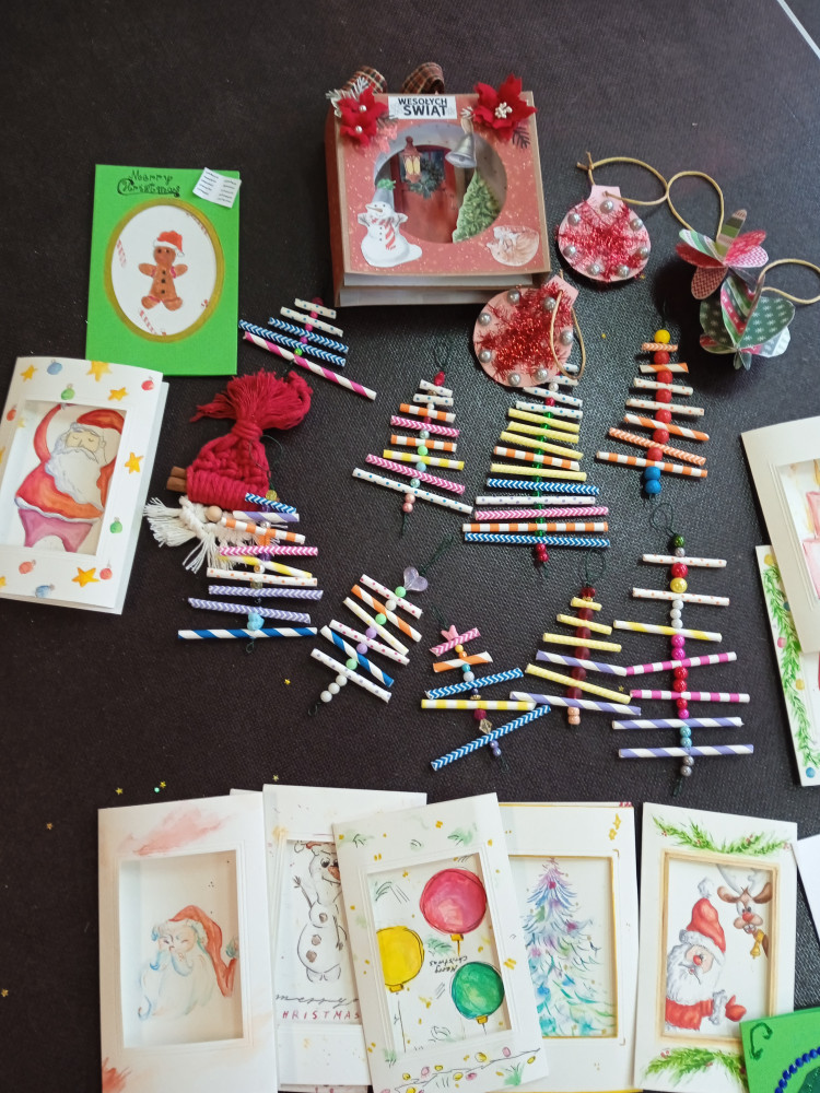 Podczas akcji – we współpracy z samorządem uczniowskim – udało się zgromadzić również ozdoby świąteczne i kartki, które również trafiły do hospicjum.