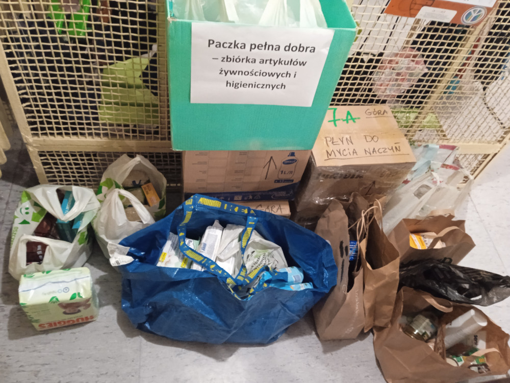 BARDZO DZIĘKUJEMY wszystkim uczniom ( wolontariuszom, ale nie tylko), rodzicom, nauczycielom i pracownikom szkoły za tak aktywne włączenie się w akcję. Serdeczne podziękowania składamy również P. Joannie ( mamie jednej z naszych uczennic) za pomoc w dowiezieniu produktów w wyznaczone miejsce.