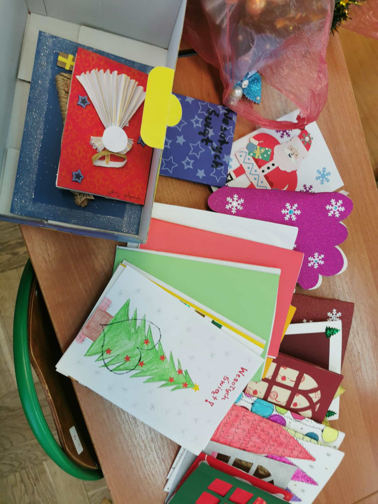 W ostatni weekend listopada P. Barbara Benda - opiekun wolontariatu szkolnego, wraz z pomocnikiem, dostarczyła zebrane artykuły i kartki oraz ozdoby do siedziby hospicjum znajdującego się przy ul. Wileńskiej 69.