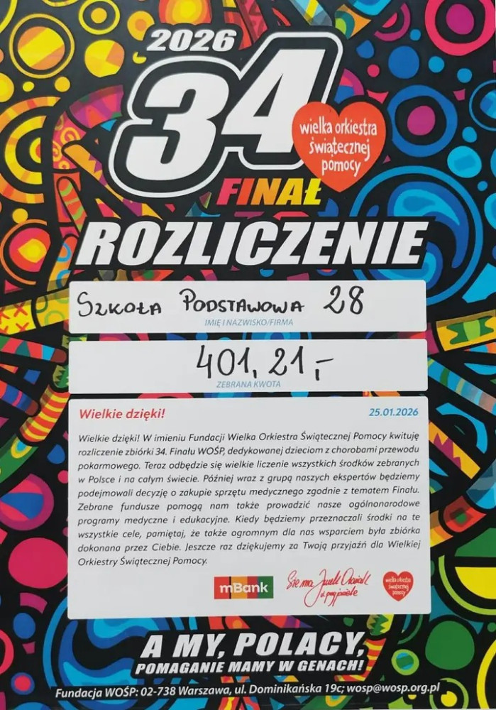 Kwota zebrana podczas akcji – 401,21 + 75zł z e-skarbonki = 476,21zł.